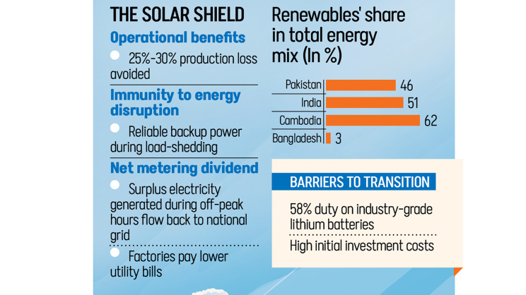He added that greater reliance on renewable energy would shield industrial units from power cuts and diesel shortages. It could also help secure more export orders in markets such as the United States and Europe, where buyers increasingly favour greener supply chains.