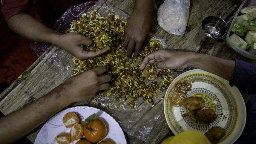 Kamal Ahmad, a final-year student of the Bangla department at Southeast University, talks about the homesickness that creeps in during the quiet moments before breaking the fast. “Eating alone feels very bad," Kamal says. "Having Iftar with those in the mess, however, helps a little in allowing you to forget that you are doing this without your family."