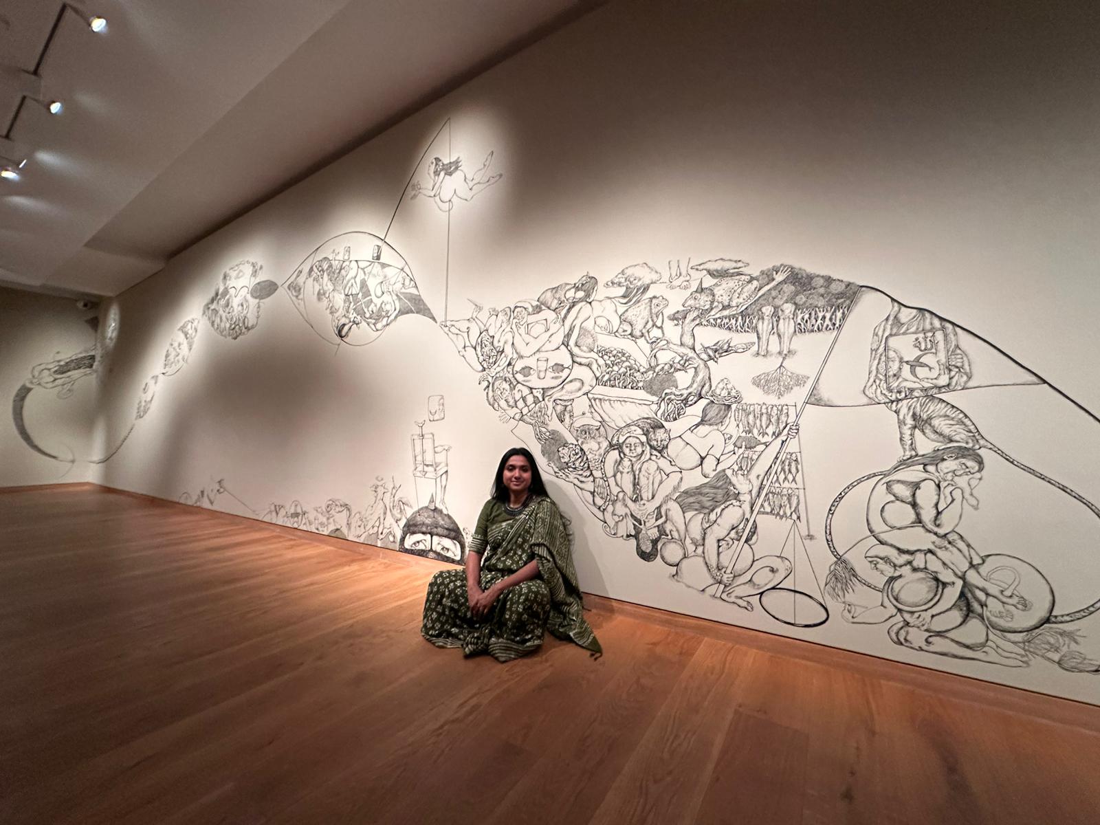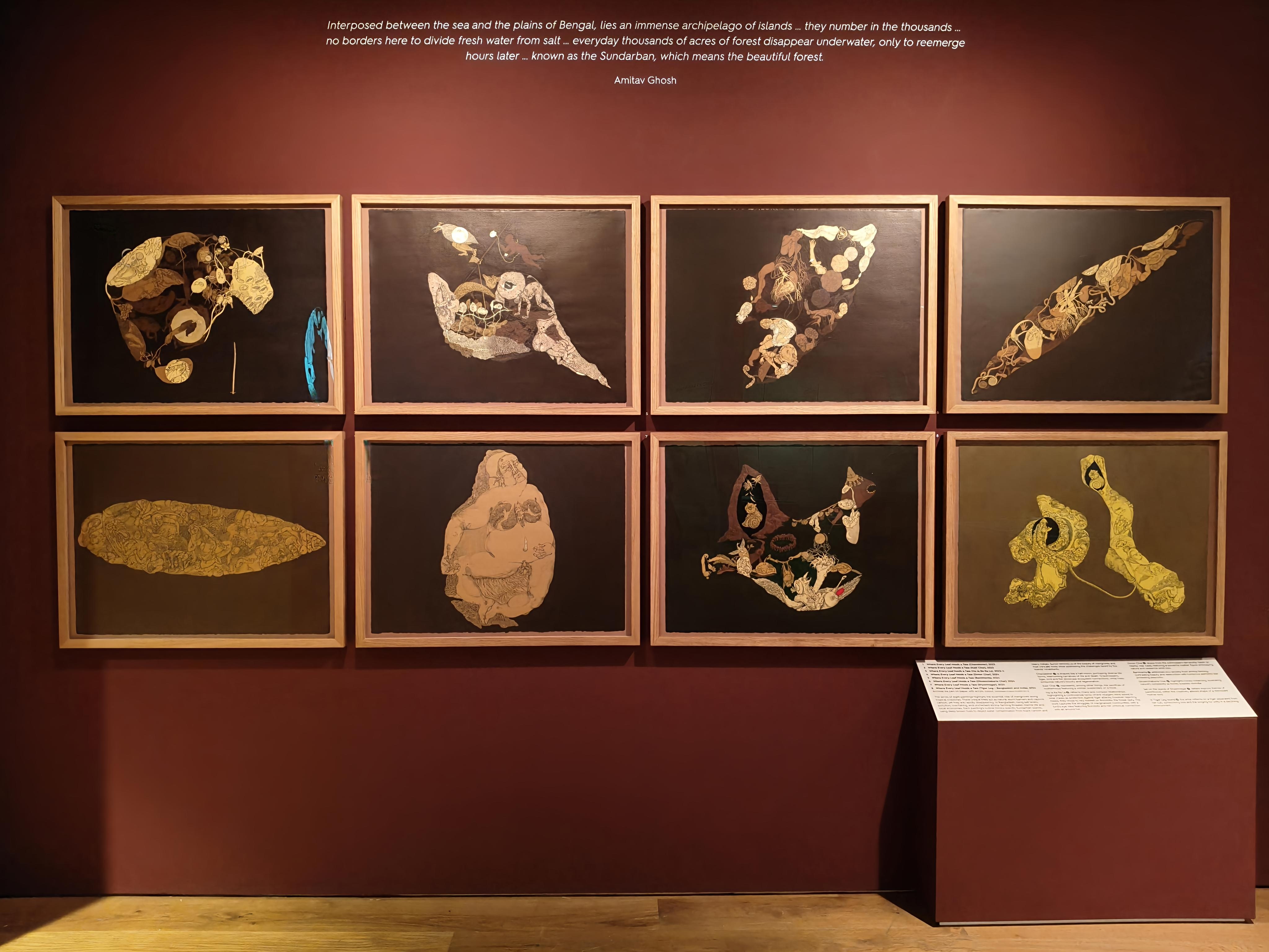 Before, during, and after her residency, she worked on themes of climate change driven by politics and corruption, resulting in migration. She has also highlighted how the lives of coastal communities are affected by deforestation. The exhibition features 22 of her artworks, predominantly pen on paper, alongside approximately 28 objects from the Ashmolean Museum of Art and Archaeology that inspired her work.