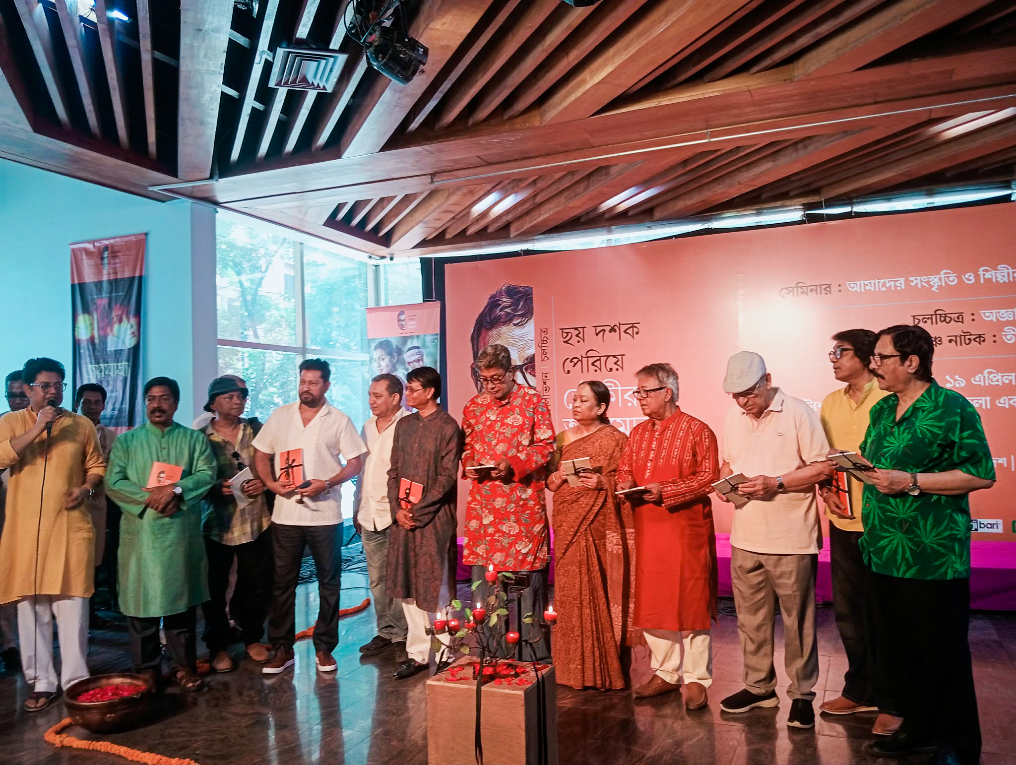 The evening opened on a musical note with a performance by Pintu Ghosh. Soon after, a ceremonial candle-lighting, joined by senior and contemporary artistes including Tauquir Ahmed himself, formally inaugurated the programme, setting the tone for an evening of remembrance and reflection.