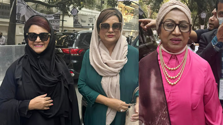 At the Gulshan Model High School centre, Dhallywood’s famed trio—Kohinoor Akhter Shuchanda, Farida Akhtar Babita, and Champa—arrived together to cast their votes, stepping out of their car smiling and posing briefly for photographers.