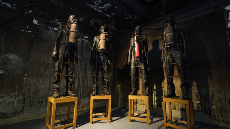 Objects warped by fire, once functional and purposeful, now stand altered, stripped of their original form. Yet the exhibition resists framing them solely as ruins. Instead, it poses a quiet question: how can such a space regain balance? How can light re-enter darkness?