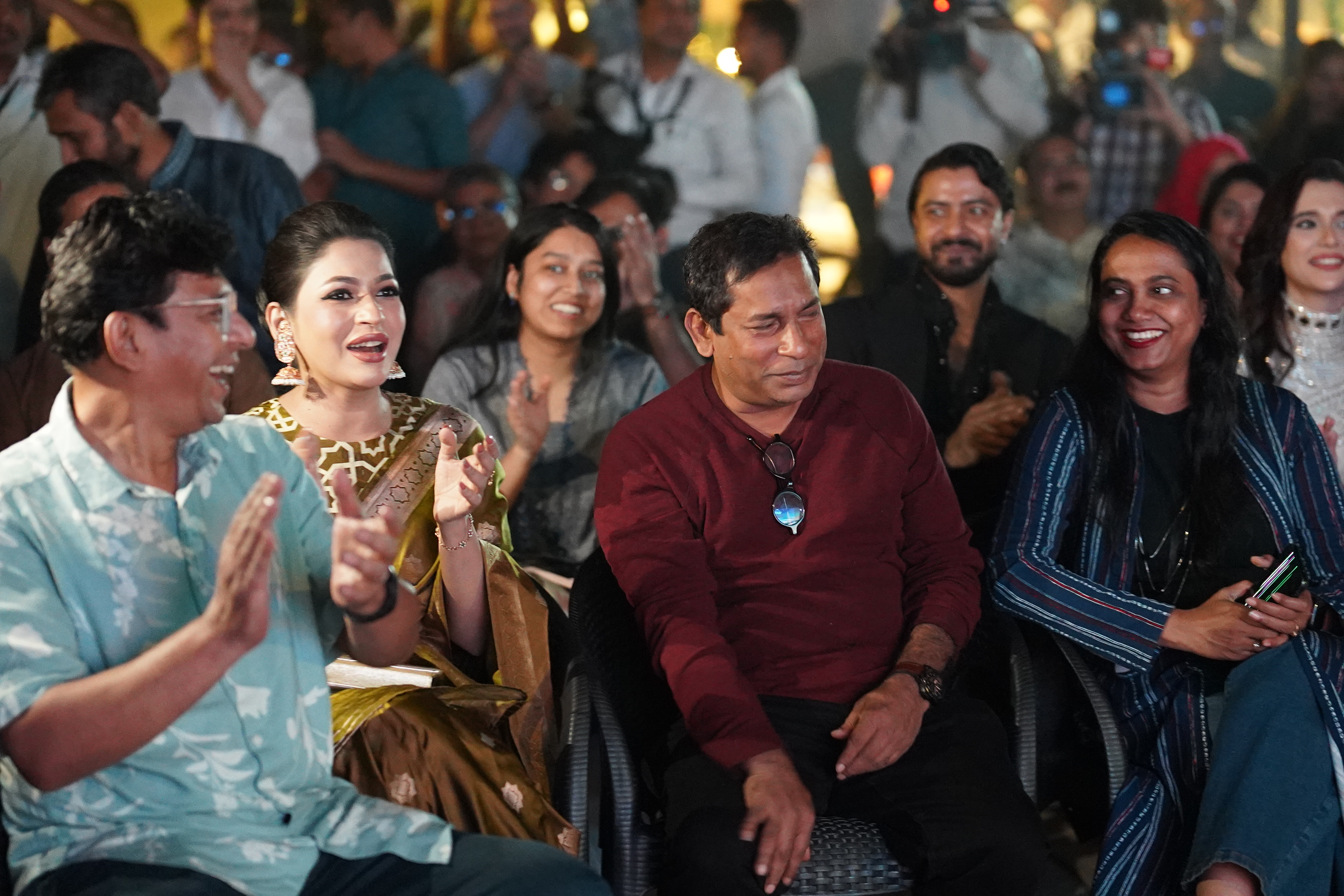 The event brought together an ensemble of beloved stars including Mosharraf Karim, Chanchal Chowdhury, Azmeri Haque Badhan, Sabila Nur, Sariful Razz, Zakia Bari Mamo, Shyamal Mawla and Intekhab Dinar. Director Tanim Noor and Hoichoi’s Country Director Sakib R Khan were also present, alongside members of various media outlets.