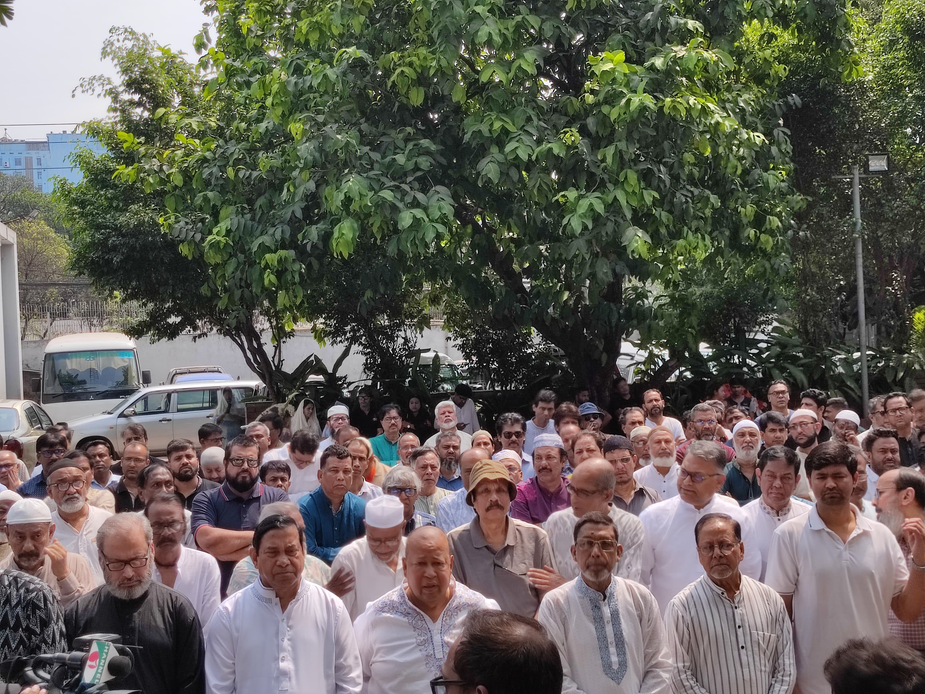 The first janaza of National Film Award-winning actor and Radio Bhumi’s Station Chief Shams Sumon was held today, Wednesday (March 18), at 11 am on the premises of Channel i. Colleagues of the late actor, along with many members of the cultural community, gathered to pay their final respects.