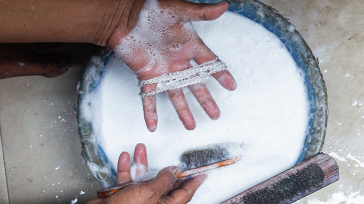 Appearance is another factor. “Silver is naturally white. It will turn black after you use it for a while,” he explains. Tarnishing is not a flaw. It is a natural reaction.