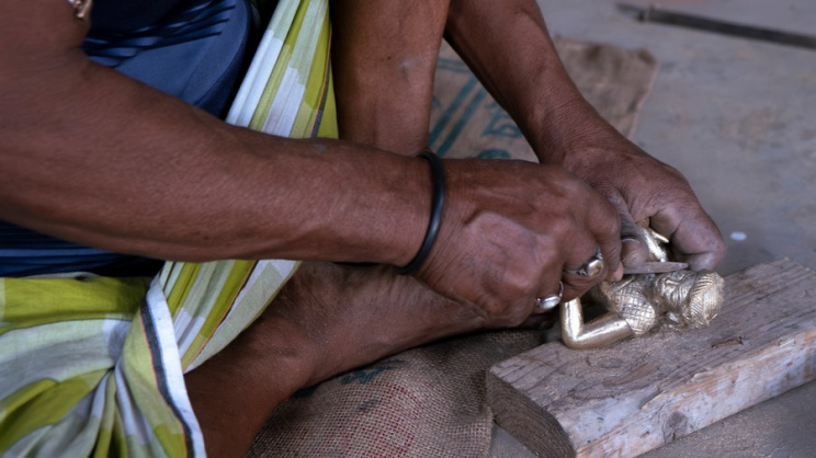 He also points to another difficulty: tin is no longer easy to source and has become too expensive to rely on comfortably. As a result, he often buys old bell metal or brass items from shops and recycles them into new products.