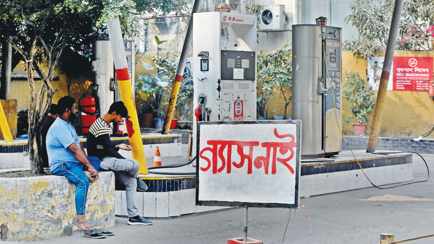 NO GAS... An empty filling station in the Paribagh area of Dhaka yesterday. It had to shut down operations around 2:00pm due to a countrywide gas shortage. Photo: Anisur Rahman