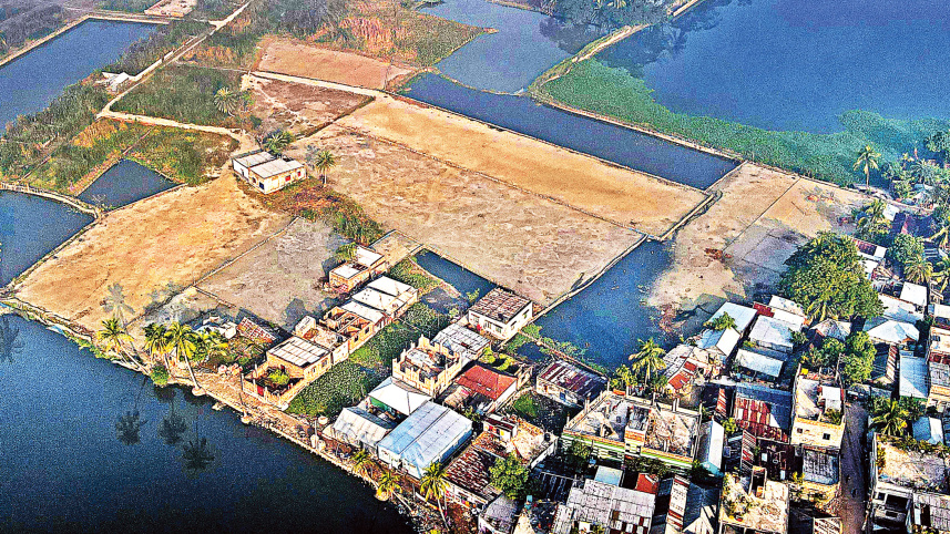 A large swathe of wetland in Khulna city’s Khalishpur has been filled with sand to make way for a housing project. This has not only hampered the biodiversity but also increased the chances of flooding in the area. Such unplanned housing projects are largely behind the shrinking of agriculture lands and wetlands. The photo was taken recently. Photo: HABIBUR RAHMAN