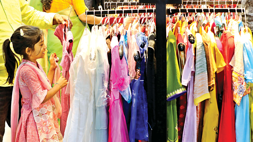 YES TO THIS DRESS! … This little girl had her heart set on the frock she picked out for herself to wear for Eid-ul-Fitr celebrations. With Eid just days away, malls across the capital are brimming with shoppers looking for the best options for themselves and their loved ones. The photo was taken yesterday. PHOTO: PRABIR DAS