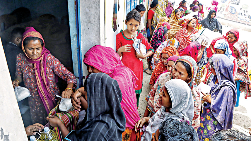 As the country gears up for Eid-ul-Fitr festivities, people from the low-income groups are still having to struggle for their daily meals. Yesterday, many waited for hours under the scorching sun to get some rice, lentils, sugar and dates at subsidised prices from a TCB truck in Khulna city’s Machghat area. However, the consumers were disappointed that dates were provided at the end of Ramadan. PHOTO: HABIBUR RAHMAN