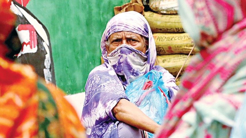This woman sits waiting for the TCB truck to arrive at the designated spot in the Ring Road area of the capital from 7:00am. The truck was supposed to reach at 11:00am but was yet to make an appearance around 12:30pm when the photo was taken yesterday. Amid difficult economic circumstances, TCB trucks have become a beacon of hope for people throughout the country. Photo: Prabir Das