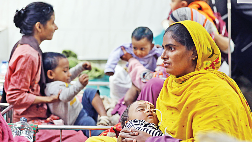 Children are being treated for diarrhoea which, according to doctors, is particular to winter at the icddr,b hospital in the capital. Hospital authorities say most of the cases are caused by rotavirus, the infection of which rises as temperatures drop. On January 1 this year, 850 children were admitted to the hospital. Compared to the same period last year, the number of patients has risen. Temperature in Dhaka dropped to 13.6 degrees Celsius yesterday. Photo: Prabir Das