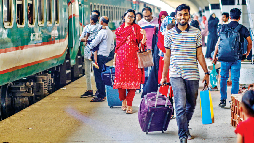 Kamalapur Railway Station is teeming with people leaving Dhaka for their village homes yesterday. A lot of people leave early to avoid the Eid rush. This Eid holidays effectively start on March 26 for many. Photo: Rashed Shumon