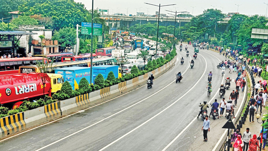 Traffic came to a standstill yesterday afternoon as several hundred garment workers blocked the Kuril-Badda road, demanding unpaid wages. The resulting gridlock spread to adjacent streets, causing significant inconvenience for commuters. Photo: Star