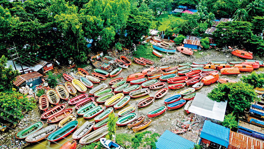 Discarded lifeboats -- salvaged from decommissioned ships -- are being repurposed into fishing vessels. Each boat sells for between Tk 15,000 and Tk 1 lakh. The photo was taken recently in Bhatiari of Sitakunda upazila, Chattogram. PHOTO: RAJIB RAIHAN