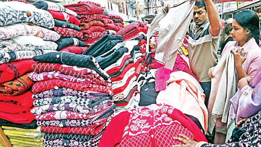 As winter sets in, roadside markets across the capital are brimming with warm clothes, drawing crowds of eager buyers. The photo was taken yesterday at Mohammapur Krishi Market. Photo: Prabir Das