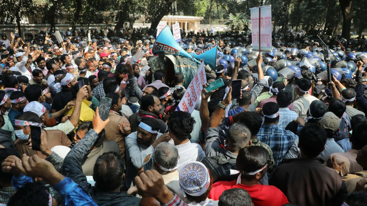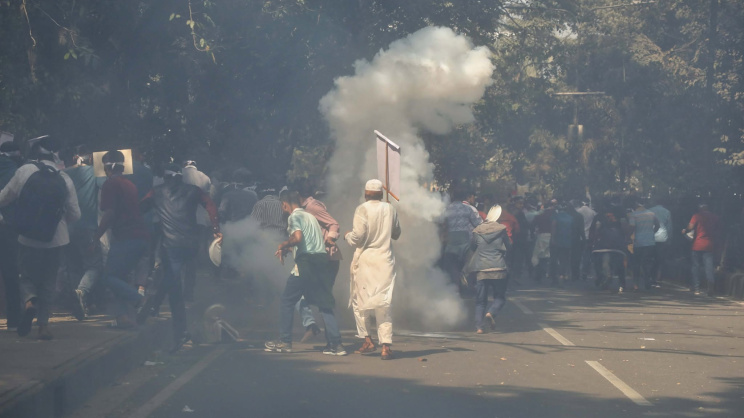 The protest began around 10:30am at Dhaka's Shahbagh, with demonstrators attempting to march towards Jamuna.