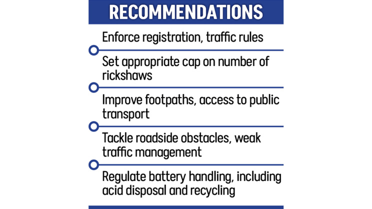 The study comes amid growing debate over battery-powered rickshaws -- popularly known as “Bangla Teslas” -- regarding traffic congestion, road safety, informal employment, and regulation.