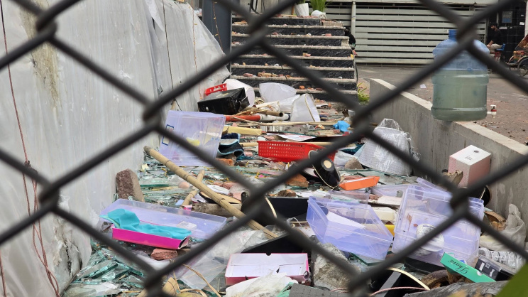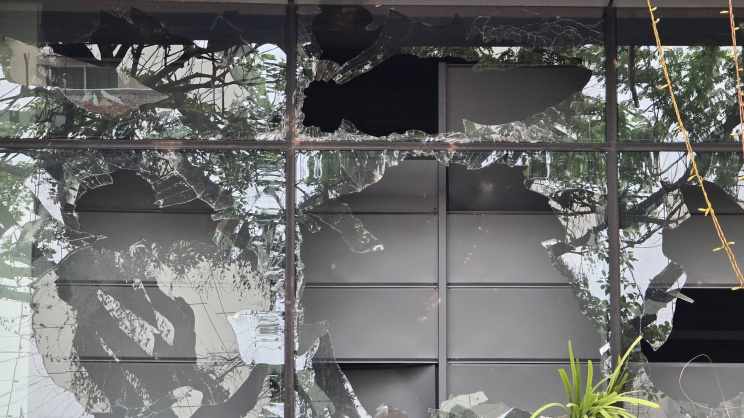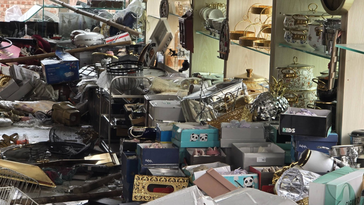 Following the vandalism, the shopping mall authorities decided to keep all shops closed today.
