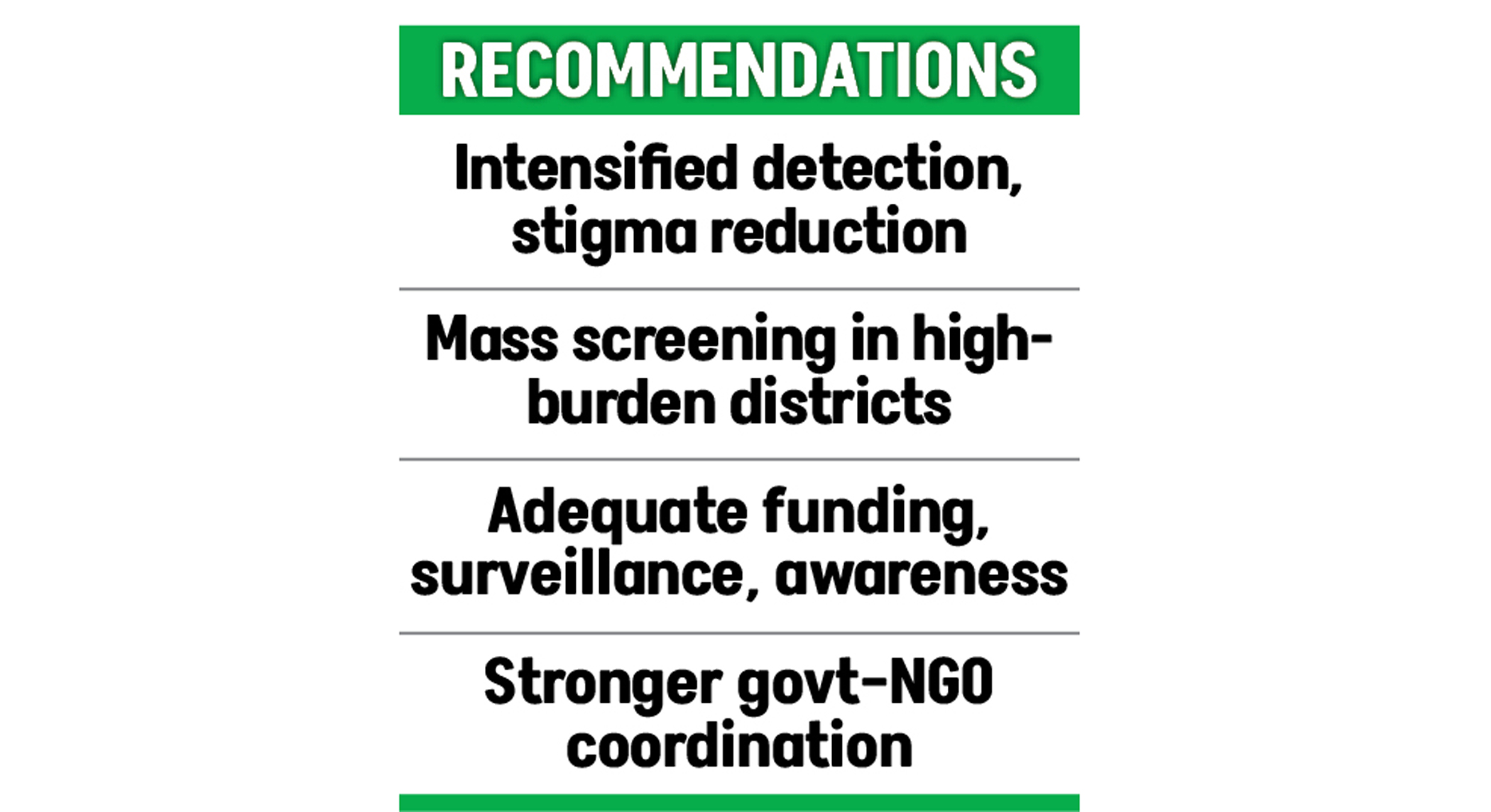 Health experts and officials have recommended an intensified drive, particularly in high-burden districts, to detect new cases and ensure patients receive treatment, aiming to achieve the zero-leprosy-prevalence target by 2030.