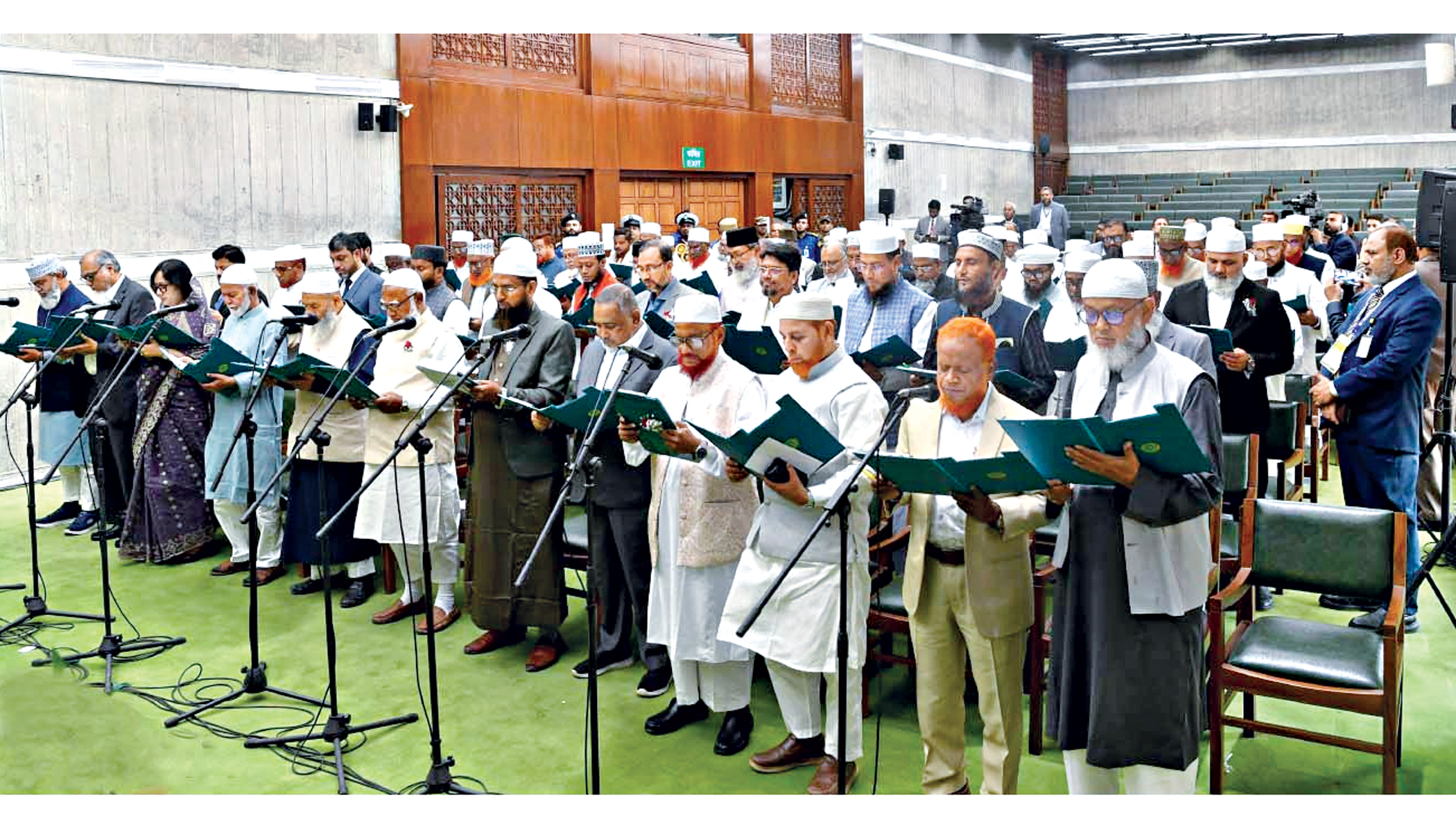 Newly elected BNP lawmakers take oath at the oath chamber of the Jatiya Sangsad Bhaban yesterday morning. PHOTOS: MEHEDI HASAN, COLLECTED
