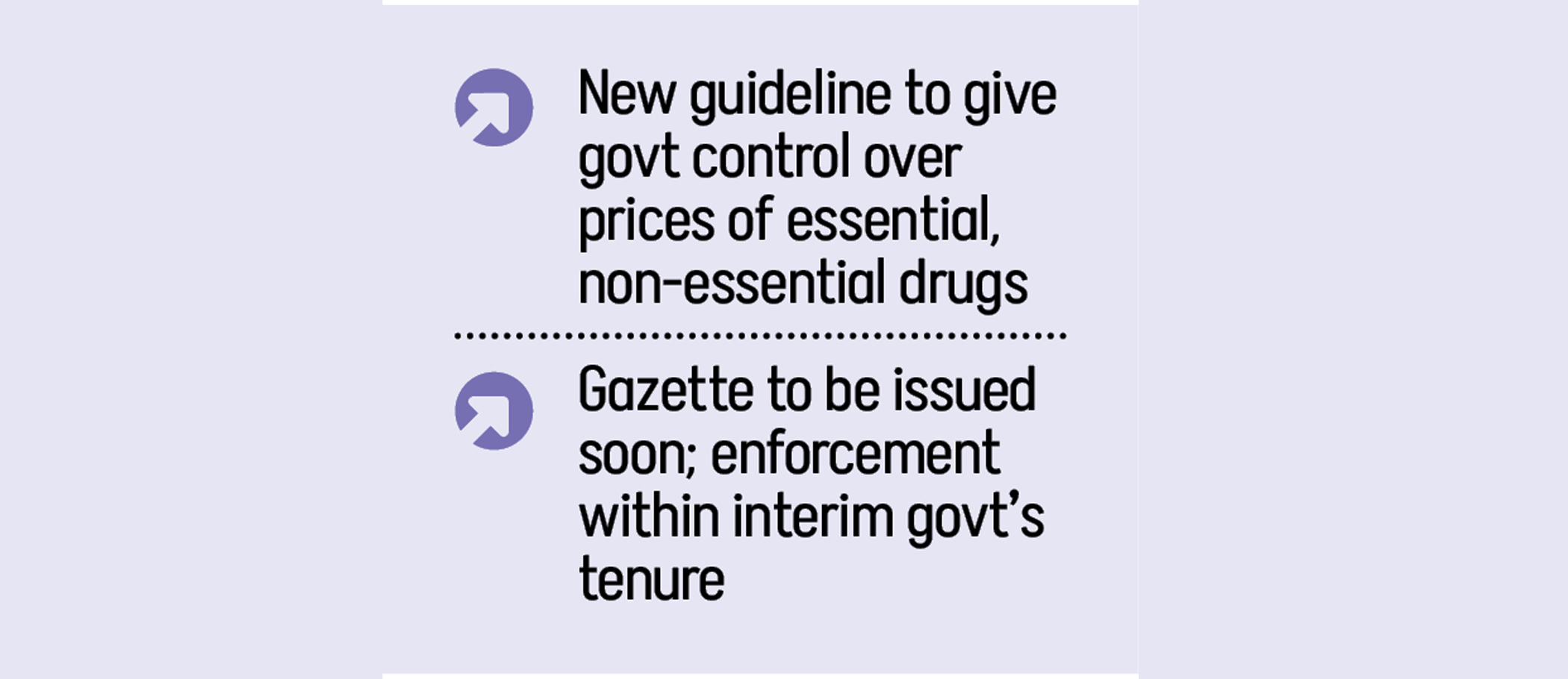 The guideline has also devised a mechanism to set prices for non-essential drugs, ensuring that the price of a medicine does not vary by more than 15 percent from one company to another.