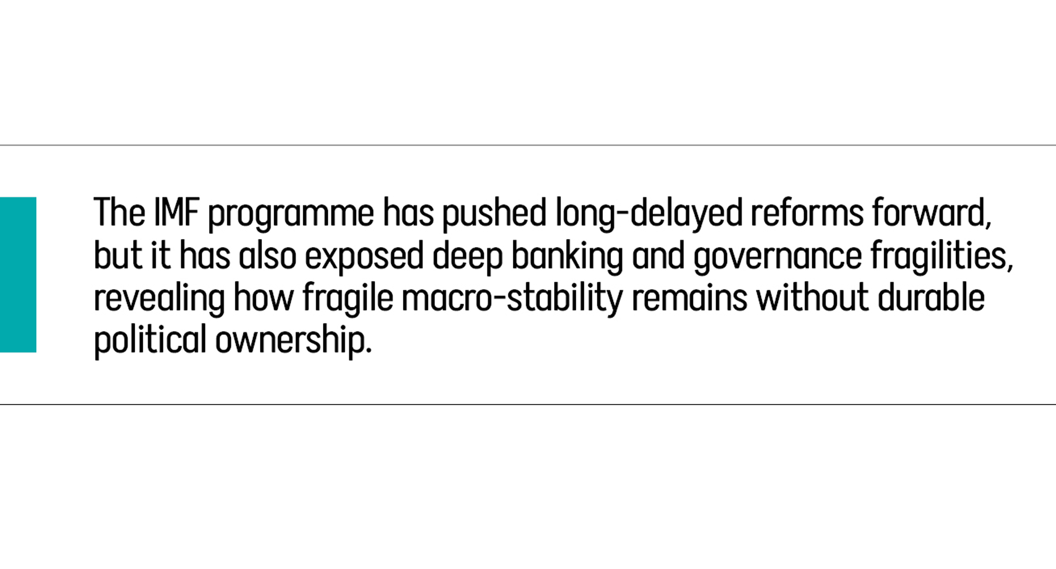 The programme underestimated the scale of banking fragility. Non‑performing loans were far higher than official figures suggested, provisioning shortfalls are deep and pervasive, and governance weaknesses systemic. Without brutally honest diagnostics and credible restructuring plans, macro stabilisation rests on quick sand.