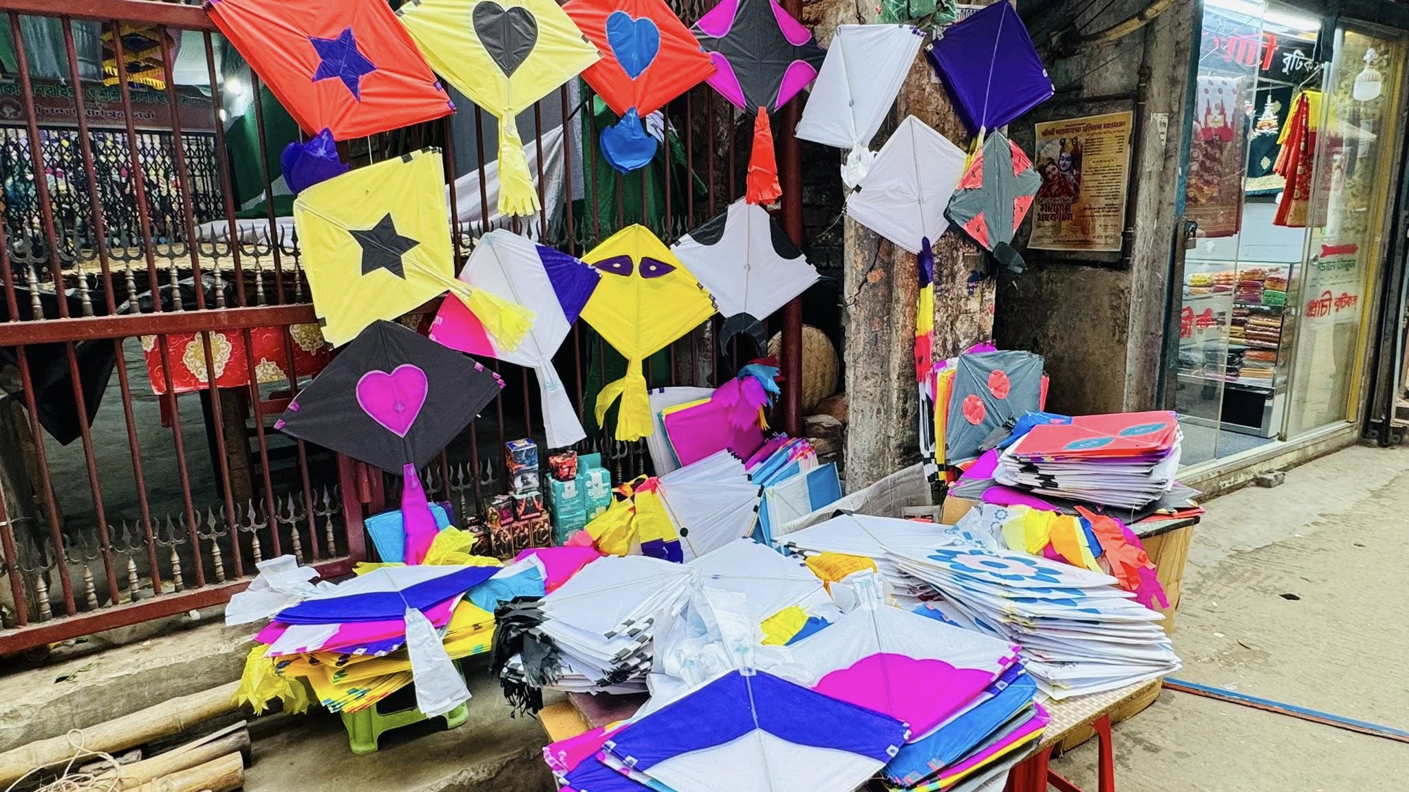 Shankhari Bazar remains a major hub, selling designs such as Chashmadar, Kautadar, Pankhiraj, Prajapati, Eagle, Bat, Love kites, Tekka and Maladar, along with several foreign-patterned varieties. Prices range from Tk5 to Tk25 for ordinary kites, while special designs sell for between Tk100 and Tk300.