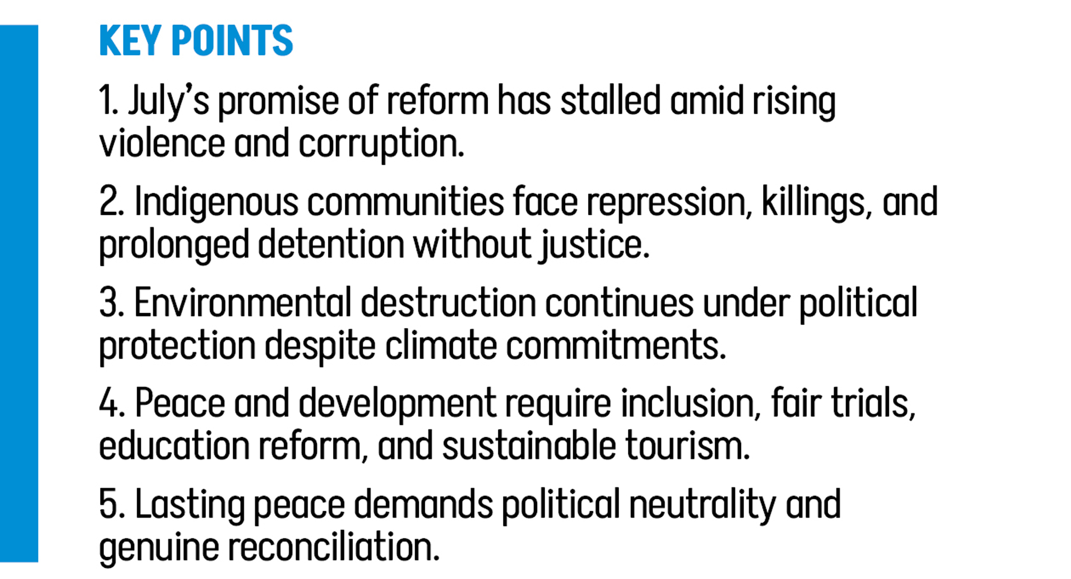 Finally, regardless of which party comes to power, as residents of the hills our expectation is that the elected government must come forward with an inclusive and generous outlook to restore lasting peace in the Chittagong Hill Tracts and rebuild harmony between hill communities and Bengalis, creating a shared space of trust and a smooth path forward for all.