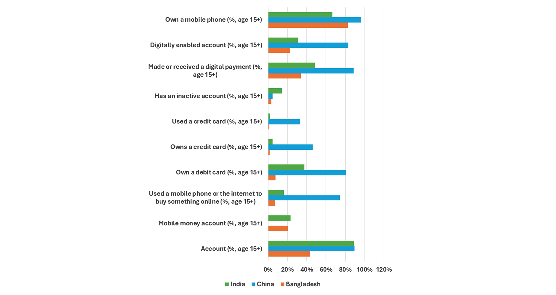 However, accomplishments on other notable avenues of the cashless space have been far limited. Bangladesh’s experience with QR-Code based transactions is far less impressive than countries such as Cambodia, Vietnam, India or China. Moreover, recent data underline both progress and enduring gaps. The 2024 Global Findex data for Bangladesh shows that only 43 per cent of adults (age 15+) have a financial account, whether through a bank, another financial institution, or mobile money, indicating that a majority of the population remains outside the formal financial system. While 21 per cent of adults hold a mobile money account and 23 per cent have a digitally enabled account, nearly half the adult population remains outside the formal financial system altogether. Card ownership is particularly low: just 8 per cent of adults have a debit card and only 2 per cent a credit card, limiting the growth of card-based payments. By comparison, China and India project a much more impressive performance, demonstrating what is possible when infrastructure, regulation, and consumer trust align.