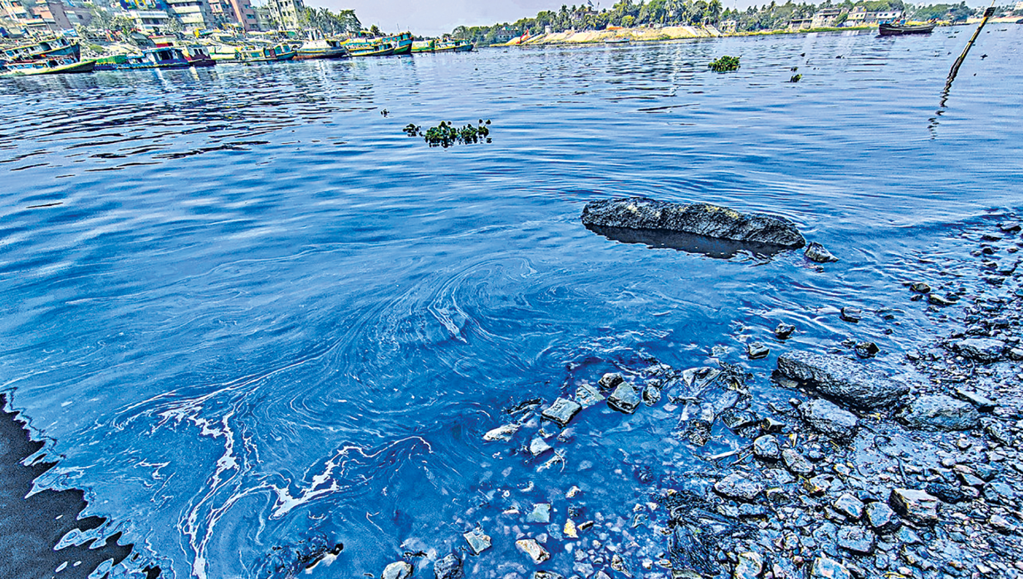 Although river pollution in Bangladesh was initially limited to urban areas, mainly around Dhaka city, the transboundary context of the rivers and growing local drivers are increasing pollutants in the rivers. The rivers surrounding Dhaka, including the Buriganga, Turag, and Shitalakkhya, are among the most polluted in Bangladesh. These rivers receive vast amounts of untreated waste from factories (at least ~3,000) that discharge industrial effluent directly into rivers without proper treatment. Forever chemicals, originating from tanneries, textiles, and chemical industries, have been detected in the rivers around Dhaka city. These substances impose a significant risk to the ecosystem and human health due to their unique, persistent nature of stability, accumulation in living organisms, and the challenge of removing these chemicals using conventional methods.