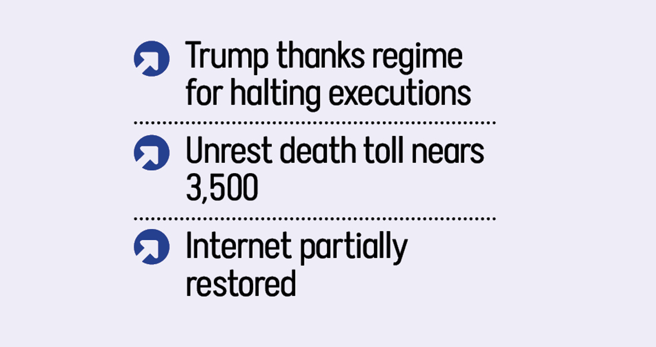 Trump, who had threatened “very strong action” if Iran executed protesters, said Tehran’s leaders had called off mass hangings.