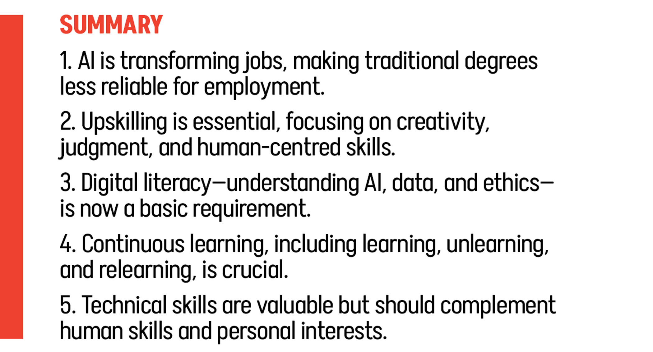 A student of economics who learns data analytics gains analytical depth. A journalism student who understands AI-assisted research gains speed and reach. A business graduate who understands automation gains a strategic advantage. Upskilling works best when it builds on a foundation, not when it tries to replace one overnight.