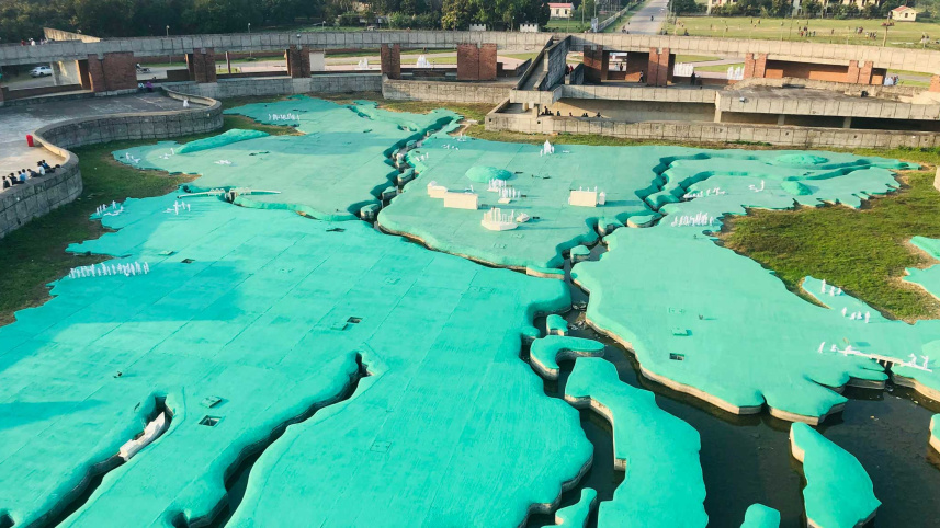 A giant map of Bangladesh highlighting major events from the 1971 war of liberation, inside the Mujibnagar Complex, Meherpur, Bangladesh. Photo: Badiuzzaman Bay