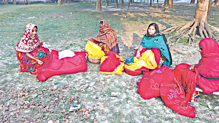 The figures of the number of women employed in commercial kantha-making will give some idea of how many lives have been affected by the revival. In July 2008, at an exhibition of kanthas organised by Aarong to celebrate its third decade, the figures of women employed for kantha work at their different centres were as follows: Jamalpur 4512, Jessore 4026, Kushtia 3324, and Sherpur 3935. If we add other organisations as well as Bangladeshi women who turn old saris into kanthas for domestic use – for their families or for customers who want functional kanthas – the numbers could easily be quadrupled. The town of Jamalpur has become a kantha town, with many women entrepreneurs setting up kantha shops which employ large numbers of women.