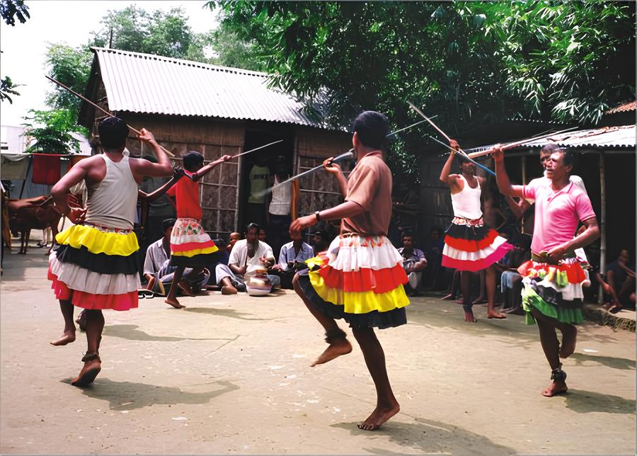 The name’s origin refers to three types of Dom soldiers, as the Dom army used to protect the western borders of Bengal. The feudal lords of places like Bishnupur and Rajnagar maintained these Dom military units. ‘Agdum’ refers to the vanguard (frontline) Dom troops, ‘Bagdum’ refers to the flank or side-guard Dom troops, and ‘Ghoradum’ refers to the Dom cavalry. Therefore, through this game, one finds evidence of the influence and prestige once held by the Dom soldiers.