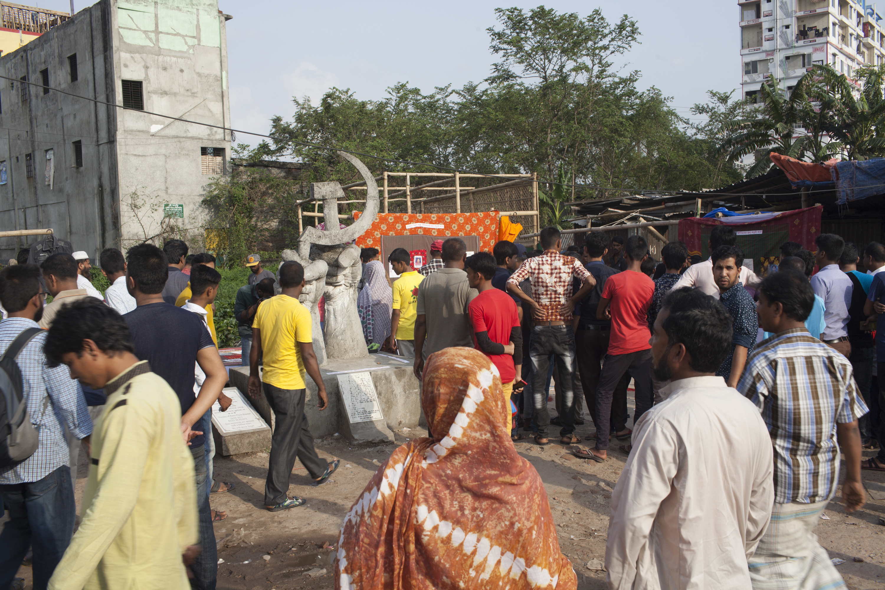 A memorial quilt exhibition at the Rana Plaza site in Savar in 2018, marking the fifth anniversary of the tragedy.