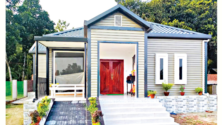 Bangladesh’s extreme heat can make traditional brick homes feel like ovens. KY Two Tone addresses this through a high-performance “layered shield” of reflective steel siding, bubble insulation, and internal glass wool. This system offers superior thermal resistance compared to high-thermal-mass bricks.