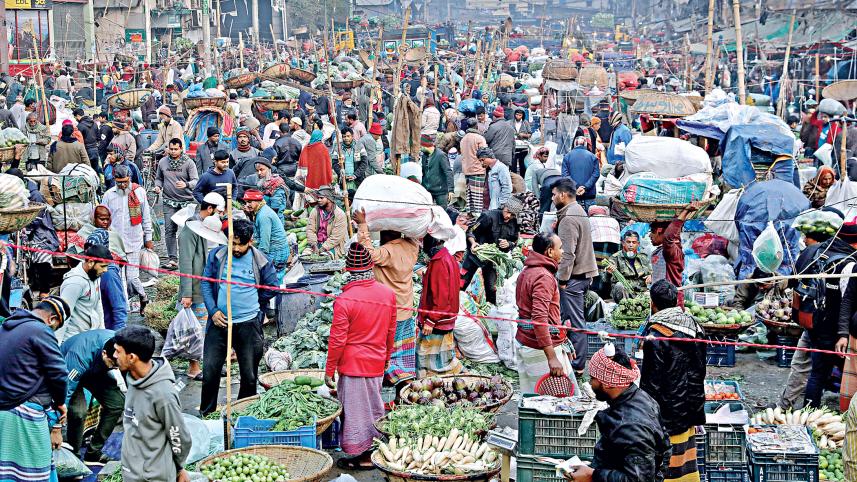 Traders and labourers crowd Karwan Bazar’s wholesale vegetable market as winter produce arrives in abundance, turning the capital’s largest hub into a hive of activity. The photo was taken yesterday morning.Photo: Anisur Rahman